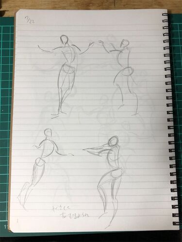 今まで引いた線を見ていたのを、鉛筆の先が円の軌道を描いているか確認しながらスケッチしました。当てずっぽう感がなくなり、線では無く実際は鉛筆を動かしている事に気づきました。