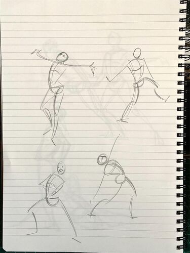 アクションラインは姿勢によって側面よりも正中線の方が描きやすいと気付きました。胴体のくびれがパックマンに見えてきたので試してみました。 ☆今日の落書き ヨー、人生lucky(ラック)もあればcool(クール)もあるサ❗️meet Come On 知らんけど。 とてち…