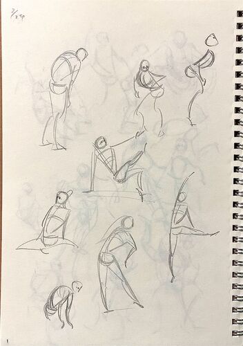 楕円の使い方を思いついて遊んでいました。ロンハズバンドのクイックスケッチ改訂版が届き読み返して、心機一転になりました。 ☆今日の落書き あとで食べるもん かれぴとデート配信だぞ〜❣️うおっおっおっうぉつおなんだ馬鹿野郎 【ハヤシリー・タカンディン…
